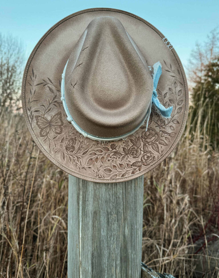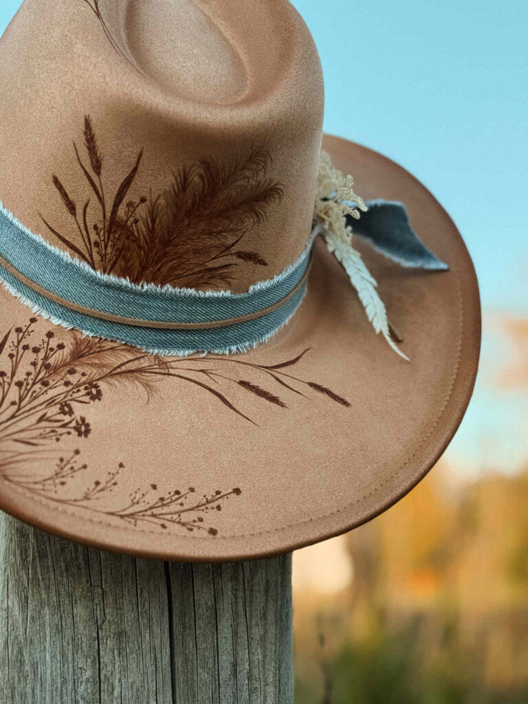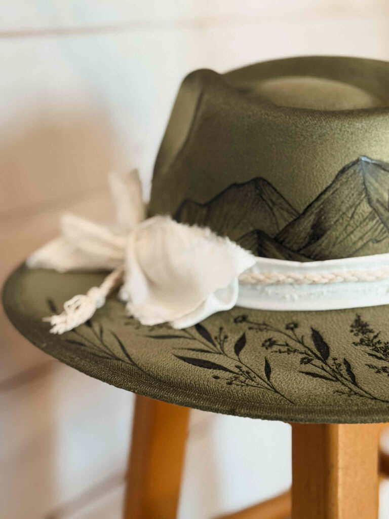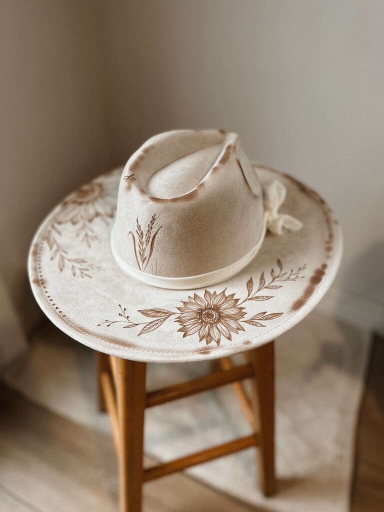 KS ARTS VISUELS Créations uniques pyrogravées à la main Voir la boutique Les créations seront donc toutes uniques. Voir la boutique Veuillez prévoir des délais pouvant aller jusqu'à 4 semaines pour la création d'une pièce personnalisée. La demande pour les chapeaux personnalisés étant très élevée, 8 places par mois seront attribuées pour ce type de commande. Le bois étant une matière naturelle et unique, chaque pièce est susceptible d’être différente des photos utilisées en démonstration. Visiter la boutique *VENDU – Chapeau pyrogravé « Copper Daisies »PORTFOLIO Lire la suiteQuick viewAdd to wishlistCompare Chapeau peint à la main – « Desert Starfall »Chapeaux disponibles $ 300.00 Ajouter au panierQuick viewAdd to wishlistCompare Chapeau pyrogravé – « Enchanted »Chapeaux disponibles $ 320.00 Ajouter au panierQuick viewAdd to wishlistCompare Casquette pyrogravée « Magnolia Charm »PORTFOLIO Lire la suiteQuick viewAdd to wishlistCompare