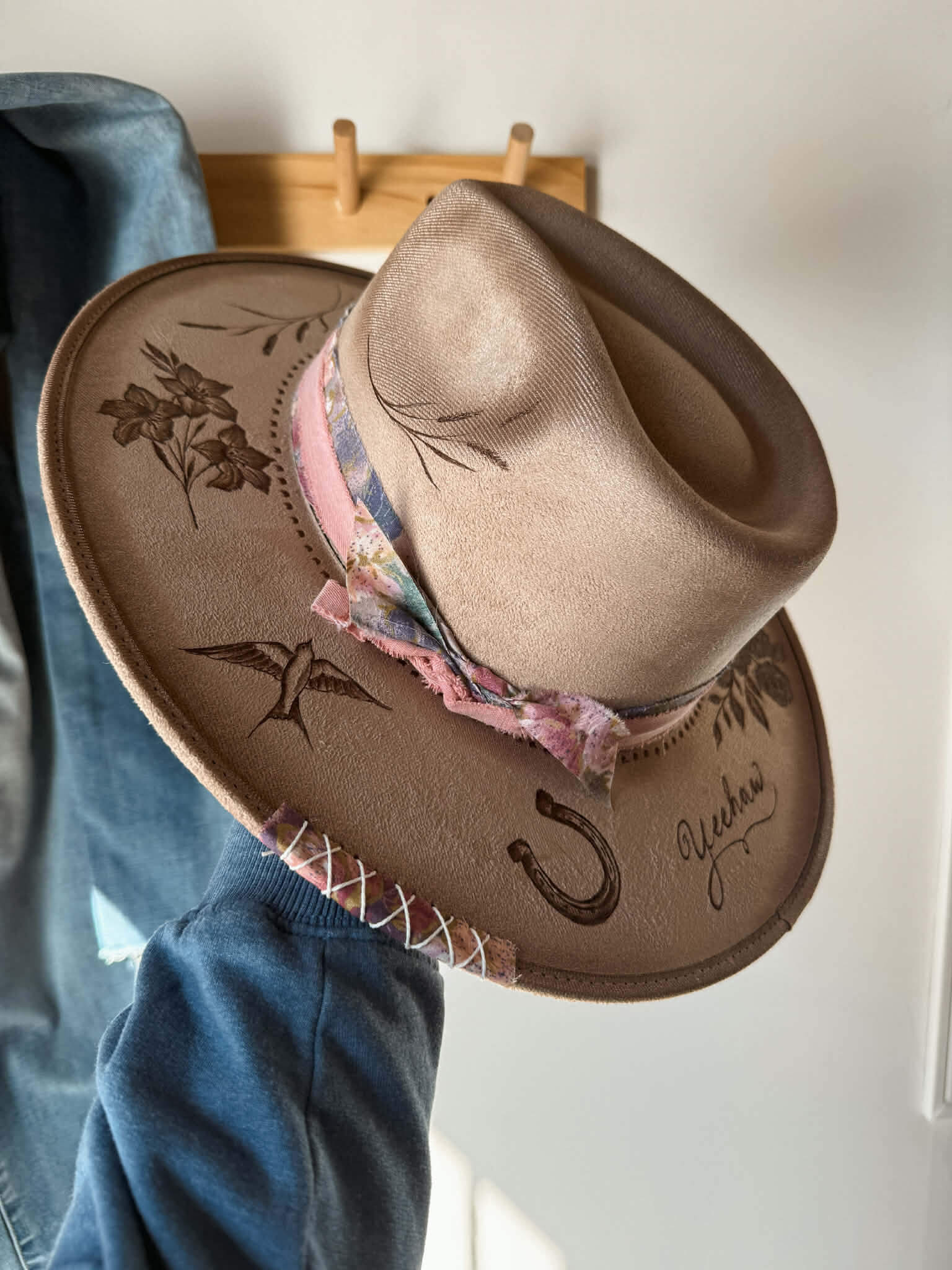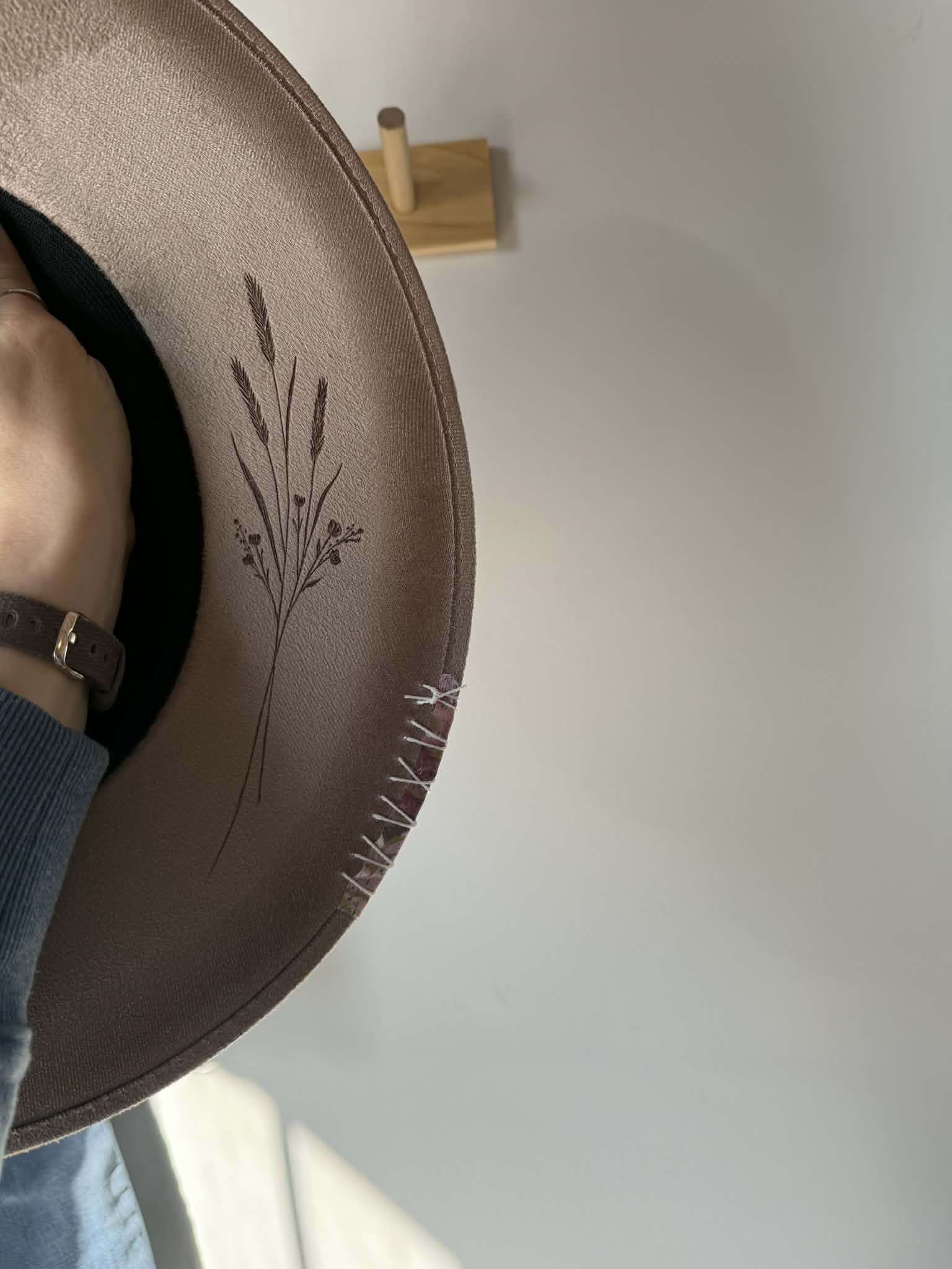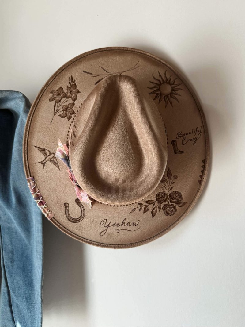 *VENDU – Chapeau pyrogravé – « Beautiful Crazy »