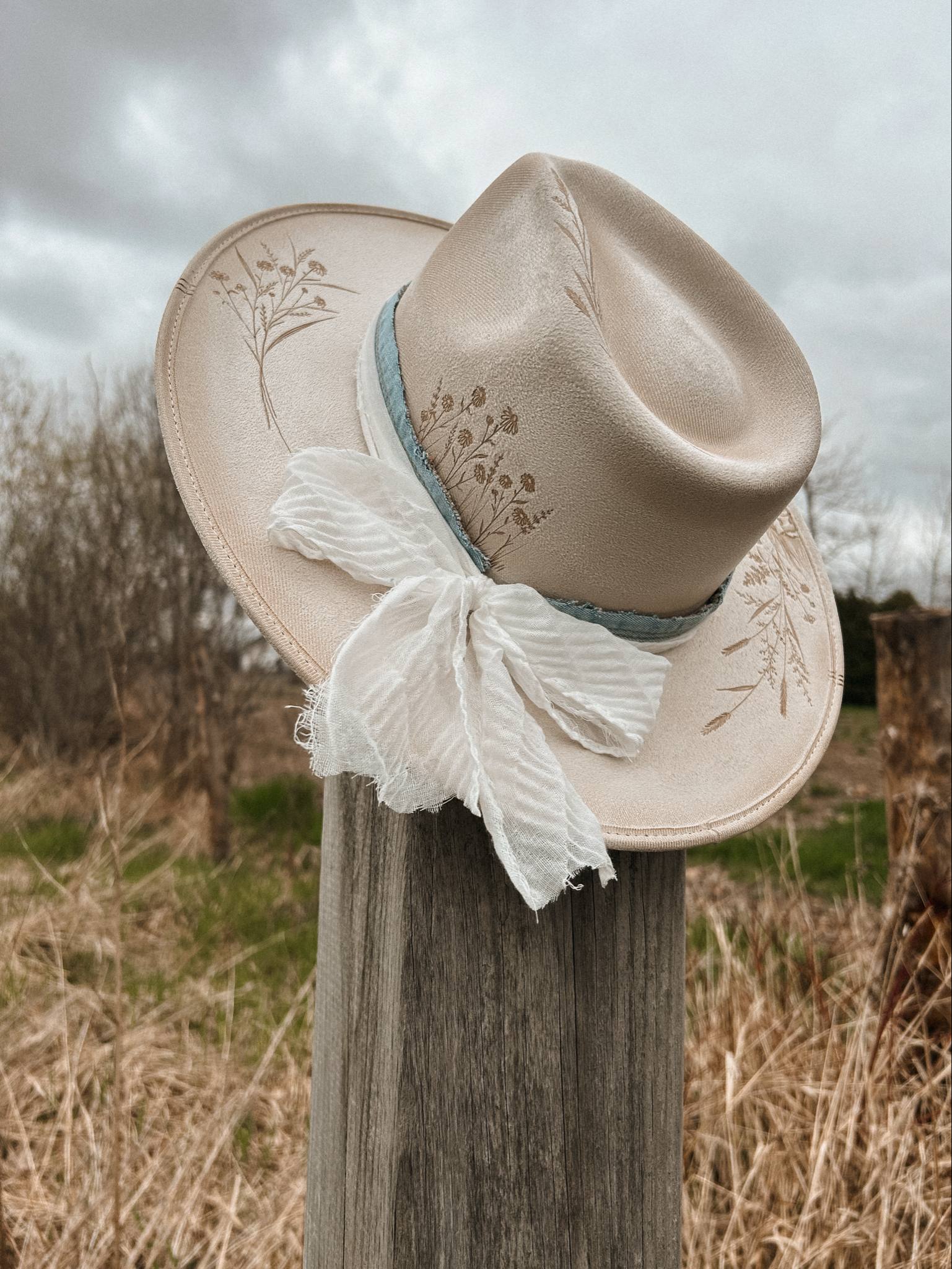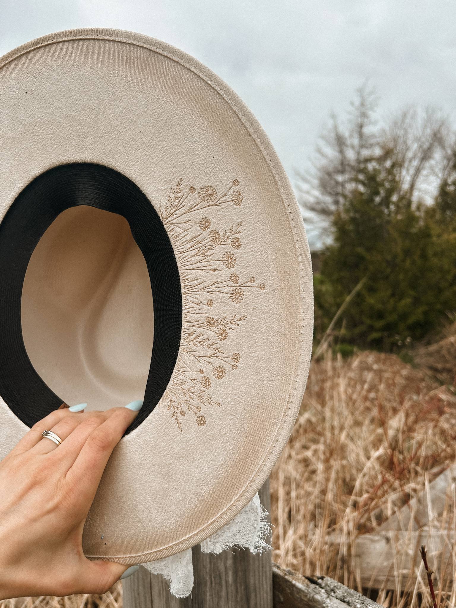 *VENDU – Chapeau pyrogravé – Field of Daisies