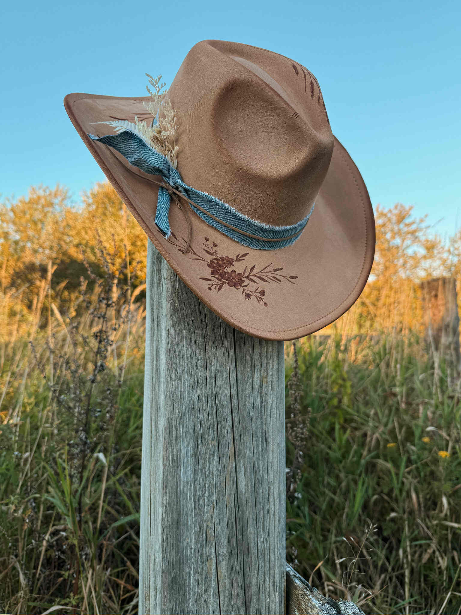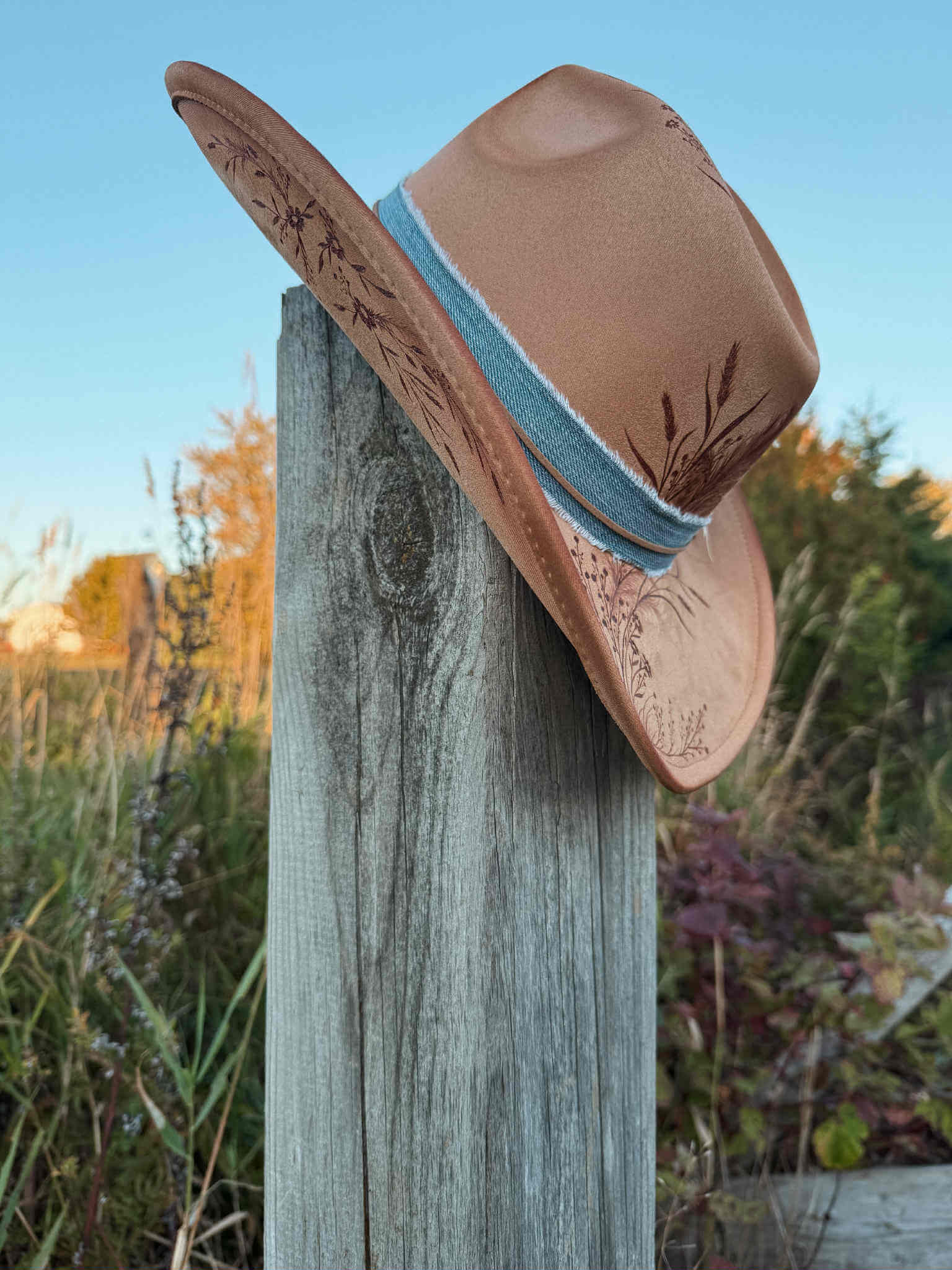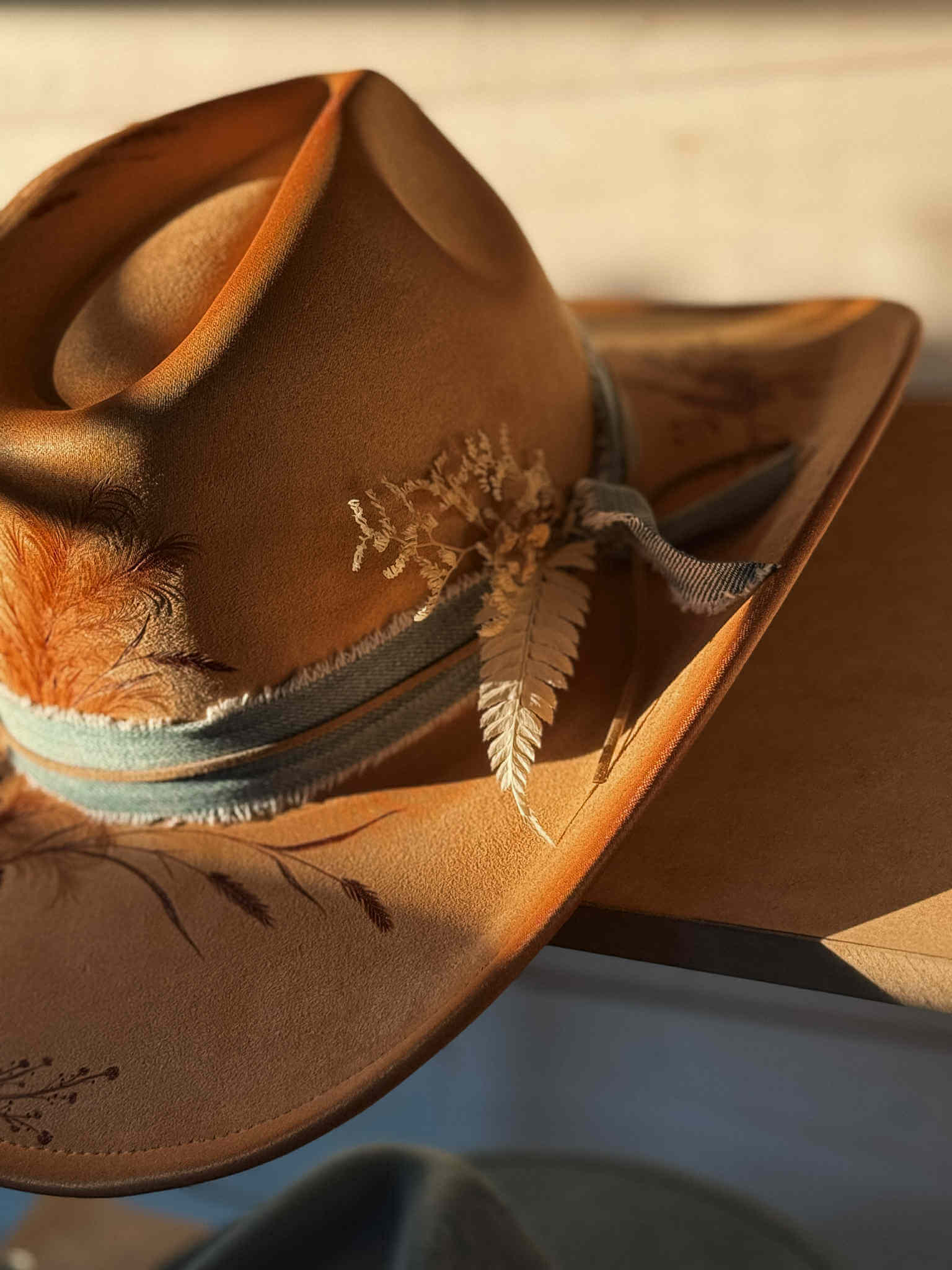 « Find Me In The Field » est définitivement pour une personne amoureuse des champs… Beaucoup de textures à travers la création de ce chapeau. L’ajout de fleurs séchées complète à merveille ce chapeau aux allures rustiques.