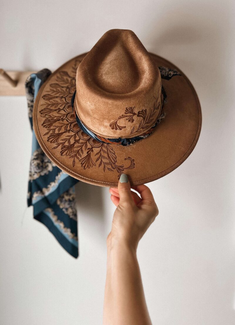 Chapeau pyrogravé à main levée *  / Bord Large Couleur Chameau