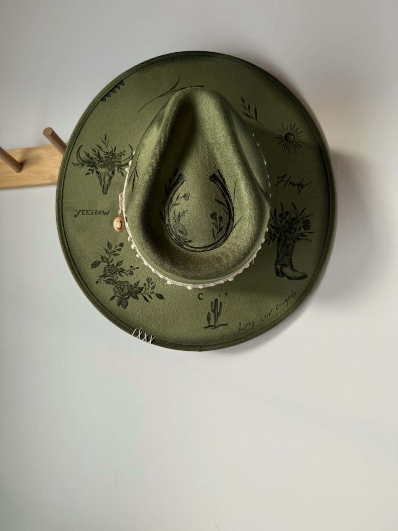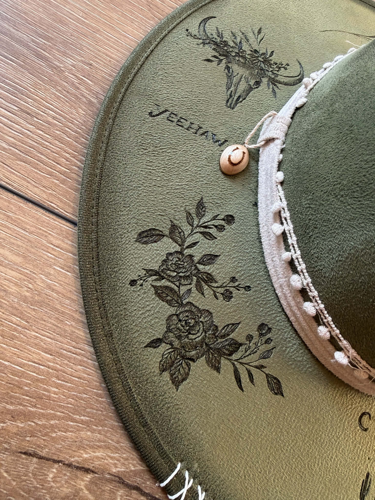 *VENDU – Chapeau pyrogravé – « Howdy »