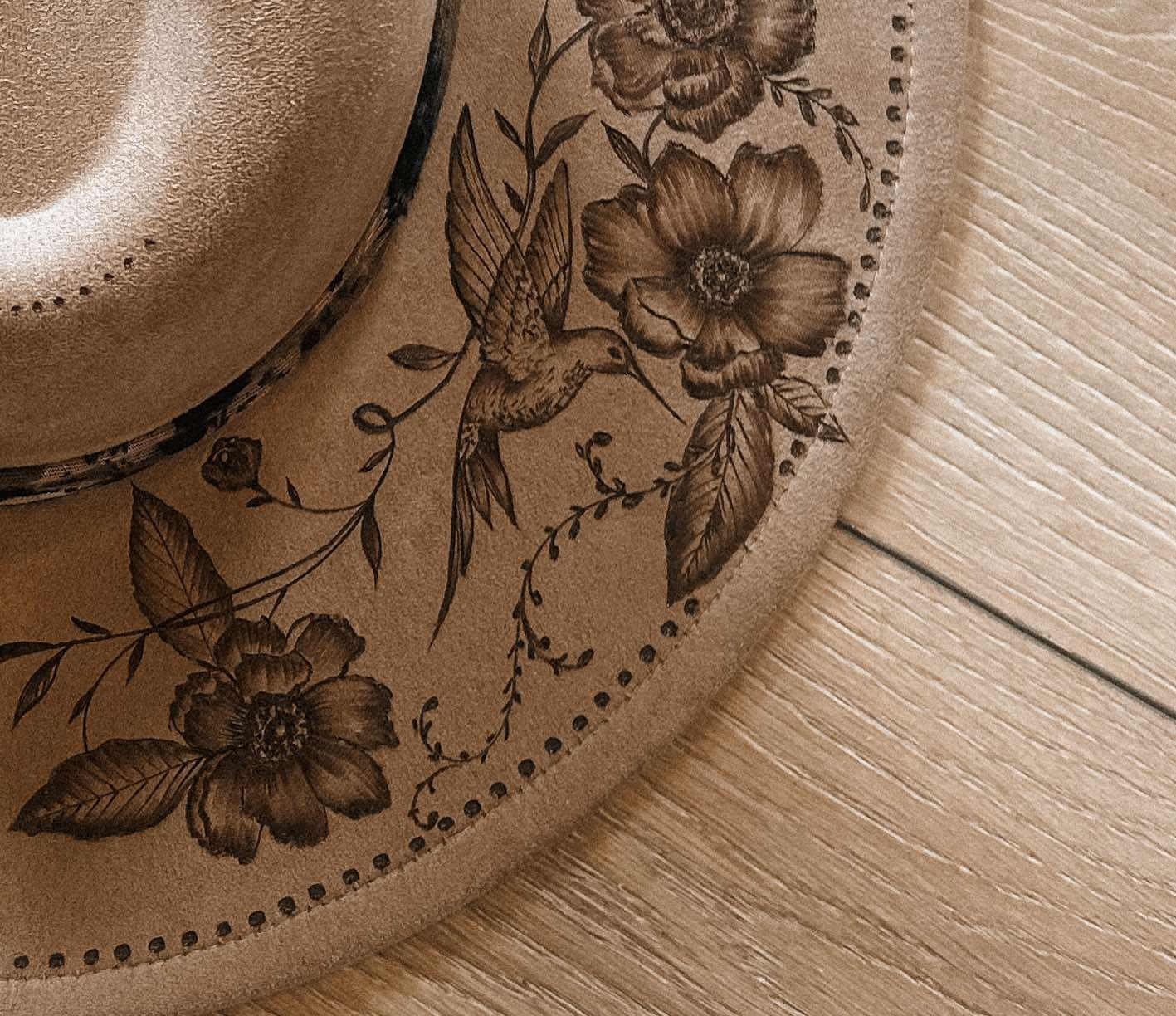 *VENDU – Chapeau pyrogravé « Hummingbird »