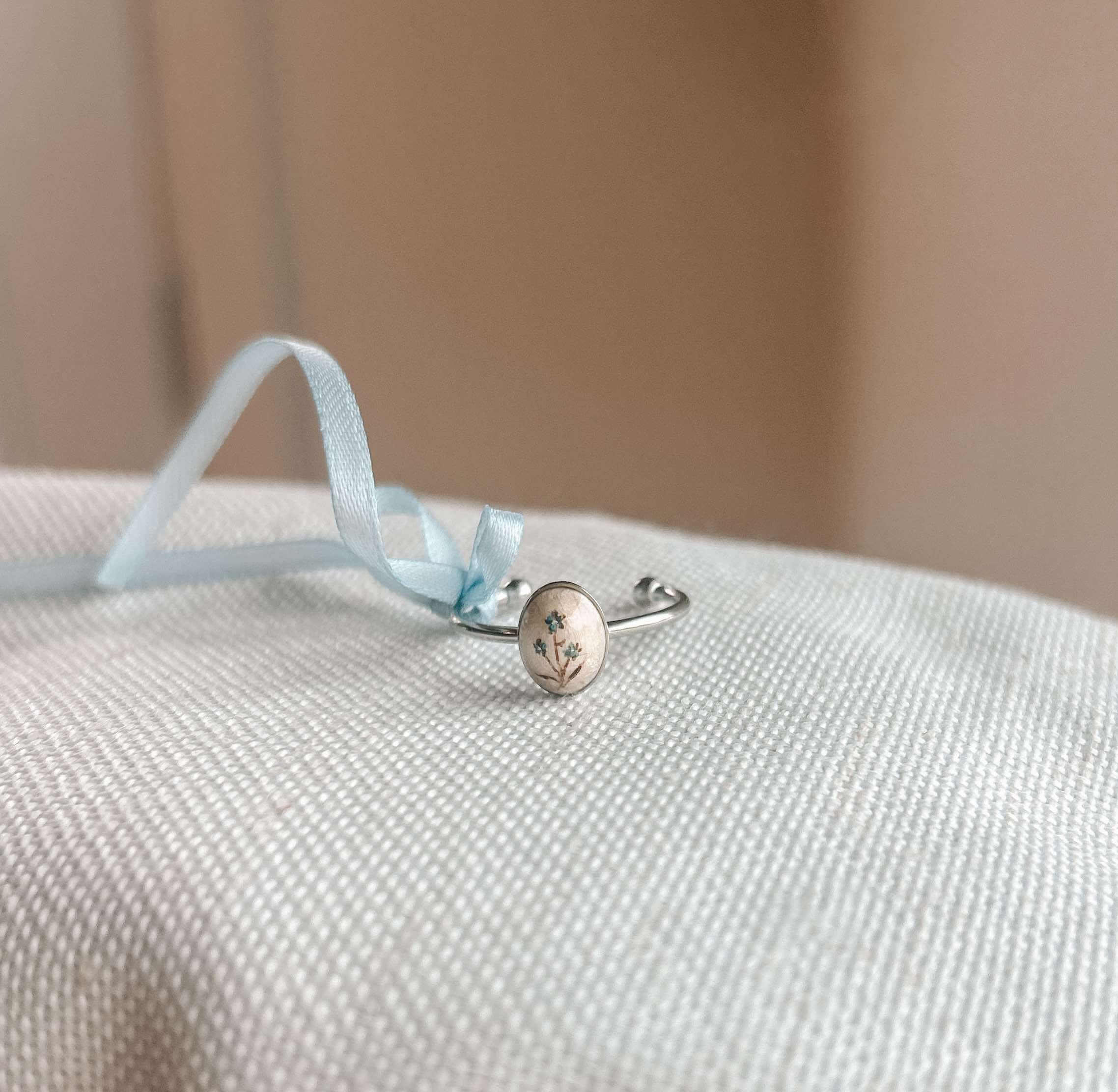 La bague « Myosotis » est une création qui me tient particulièrement à cœur. Le symbole du myosotis (« Ne m’oubliez pas ») est utilisé par la Société Alzheimer pour symboliser la perte de mémoire, un des symptômes de la maladie.