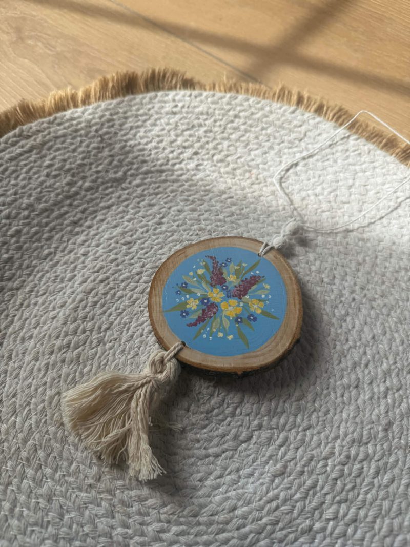 ** IMPORTANT : Chaque rondin de bois est différent (le bois étant une matière naturelle). L’ornement pourrait donc être légèrement différent de celui sur la photo (le design de peinture est le même).