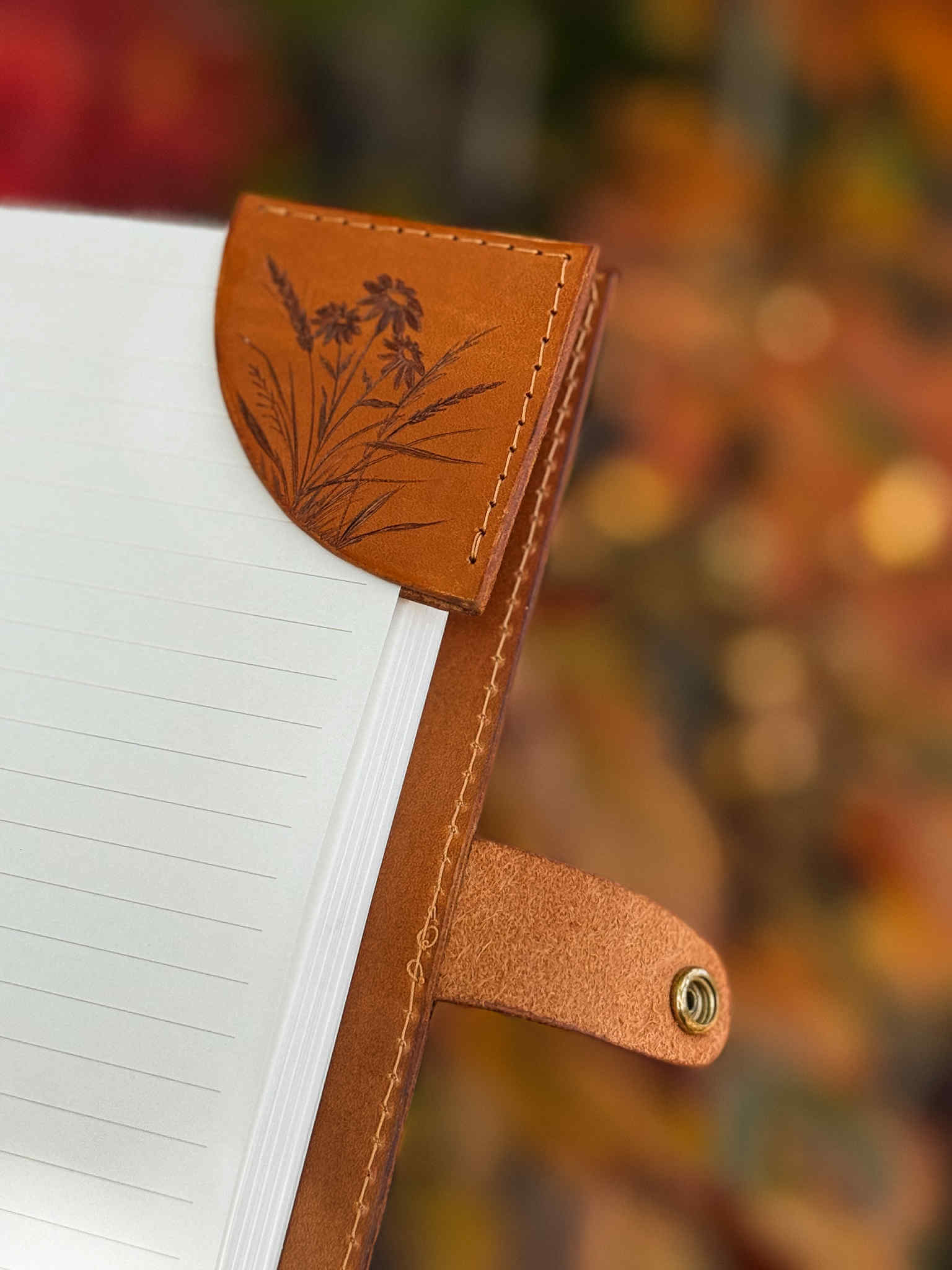 *VENDU – Signet de cuir pyrogravé « Marguerites »
