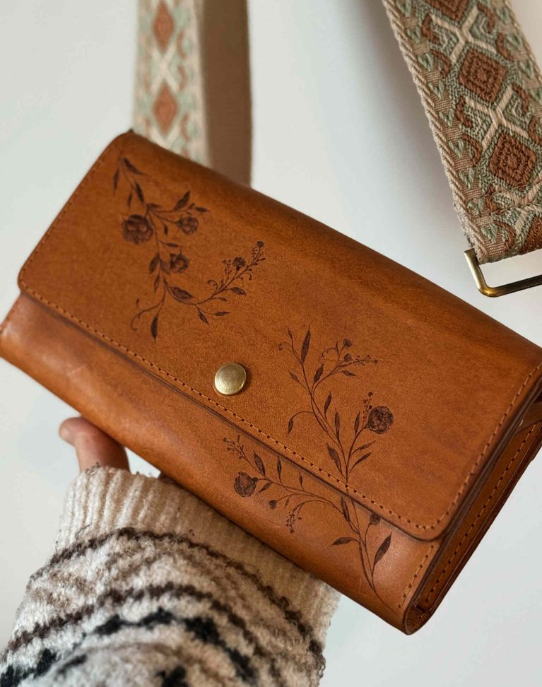 Carnet de cuir pyrogravé « Rustic Flowers »